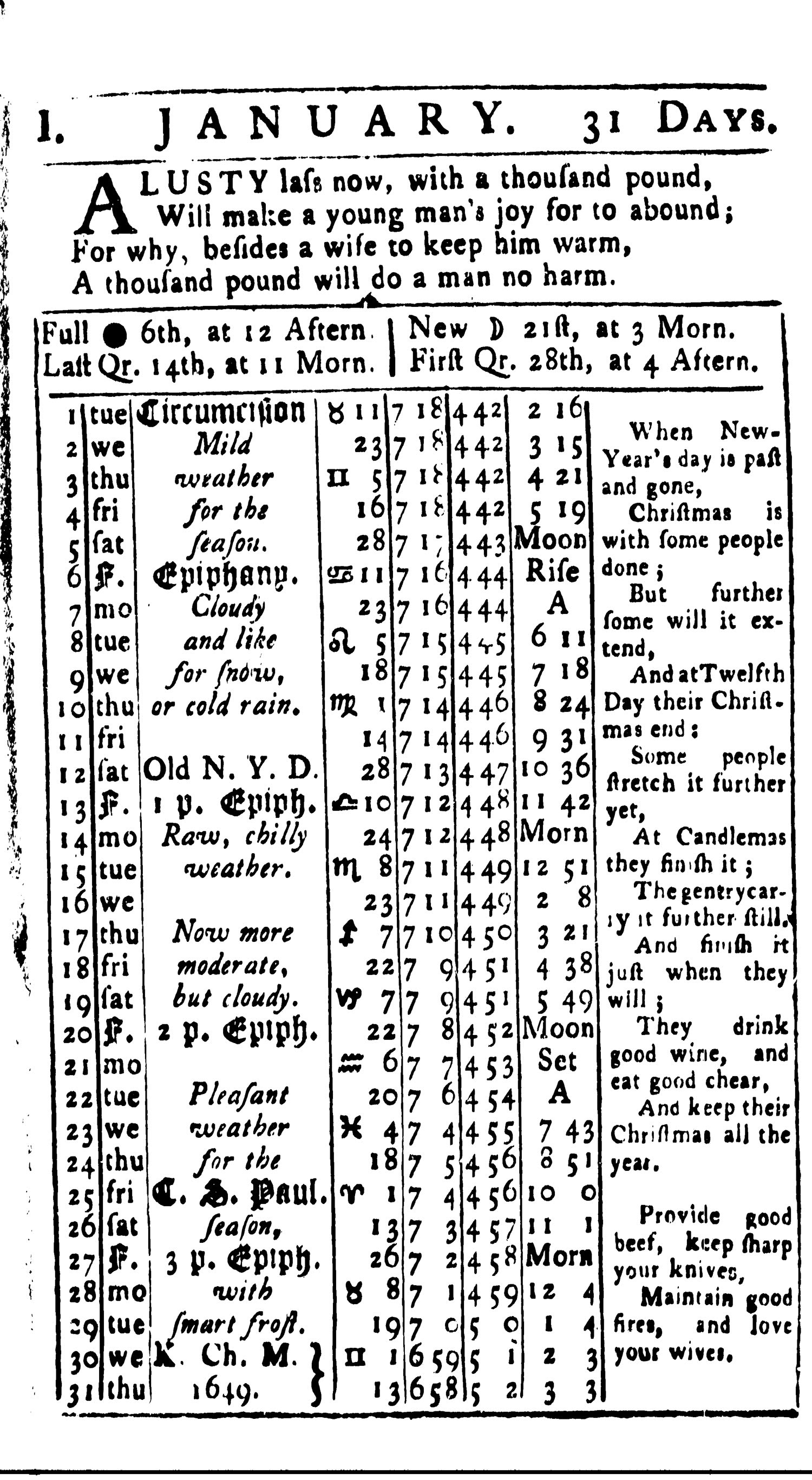 The 1765 Virginia almanack included a poem about Christmas on its page for January.