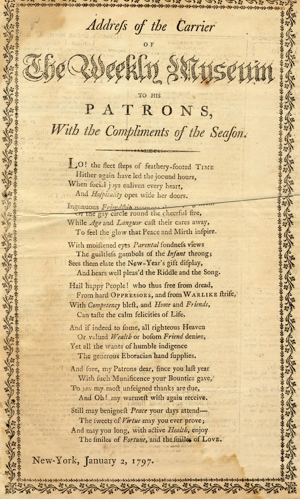 “Address of the carrier of the Weekly museum to his patrons” (New York: 1797).