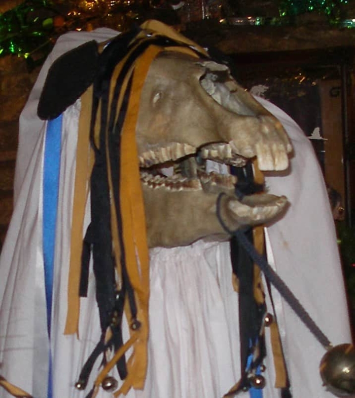 As if you weren't scared enough, here comes a Welsh skeletal horse spirit. Mari Lwyd, or Y Fari Lwyd in Welsh, is a custom in which revelers will visit your home while carrying a horse skull that's been decked during the holidays with ribbon, bells, and a sheet to give the whole affair a ghostly appearance. The Mari Lwyd troupe will engage the owner in a battle of verses and insults. If the troupe has the cleverest rhymes, they're allowed in for drinks and food while Mari Lwyd will scare away anything unwanted from the year. (Even if the owner wins the verse battle, they still let in the troupe for this reason.) Like many of the creatures on the list, Mari Lwyd's origins are lost, though there's a long history of white horses in British folklore, with horses themselves representing power and fertility.